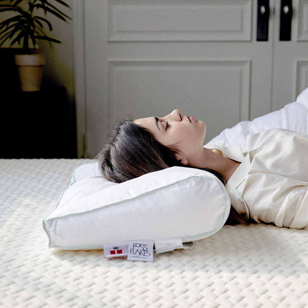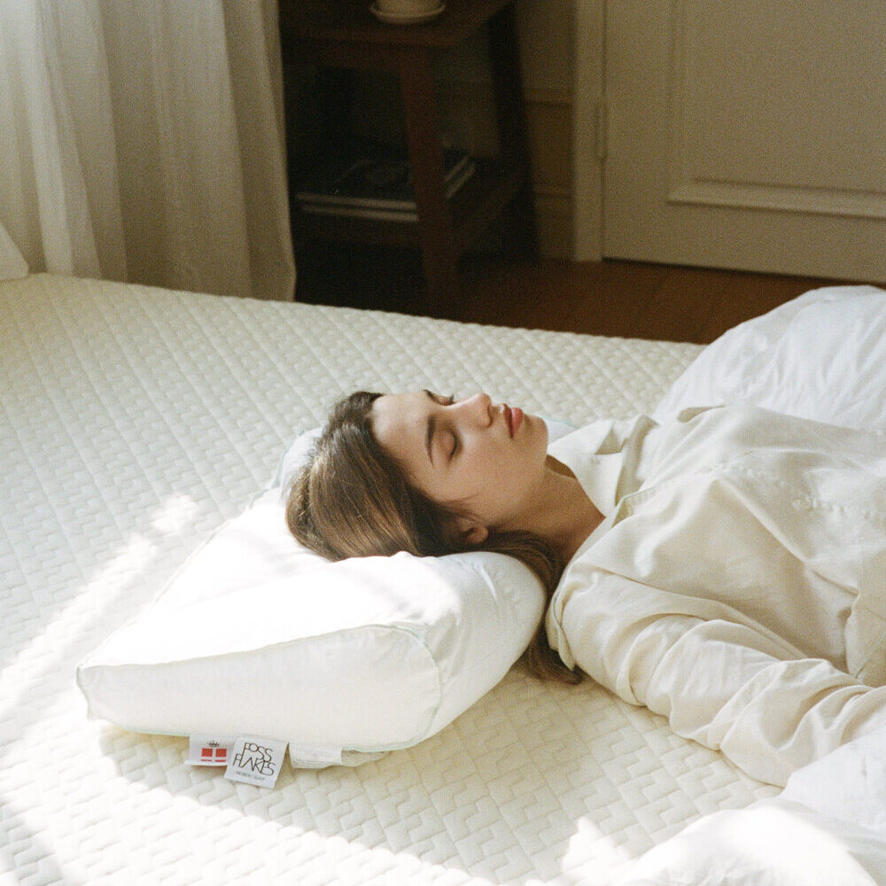このピローは、デンマークでは資格を有する医療専門職であるカイロプラクターの豊富な臨床経験と人間工学の知見をもとに開発されました。仰向け・横向き両方の寝姿勢に対応する独自のカーブ構造により、首と肩をやさしく支え、本来の自然なアーチへと導きます。