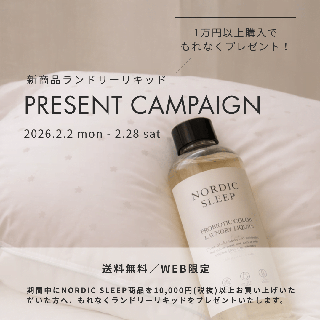 私たちの製品はお手入れが楽で、簡単にフワフワ感をキープし、形を元通りにすることができます。60度のお湯を使用し洗濯機で洗い、低温(60度)設定の乾燥機で乾燥させてください。乾燥後はすぐに製品を取り出しましょう。なお、NORDIC SLEEP製品 には柔軟剤や酵素洗剤を使用しないでください。詰め物の特性が損なわれる恐れがあります。