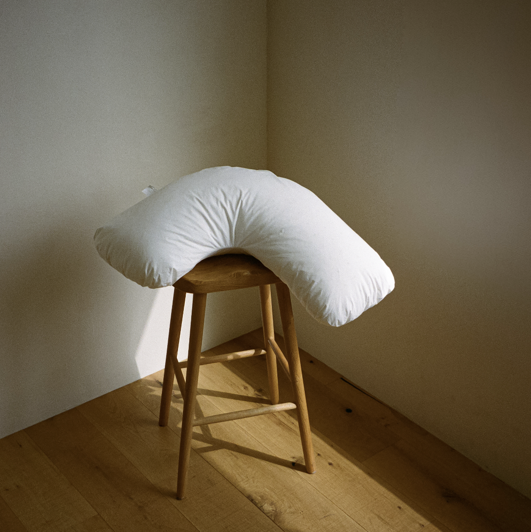L字の長い部分が、頭の後ろから背中にかけてぴったりとフィットするように頭を載せてみてください。背骨が自然なS字を描くようにサポートすることで、リラックスでき究極の心地よさを味わえます。