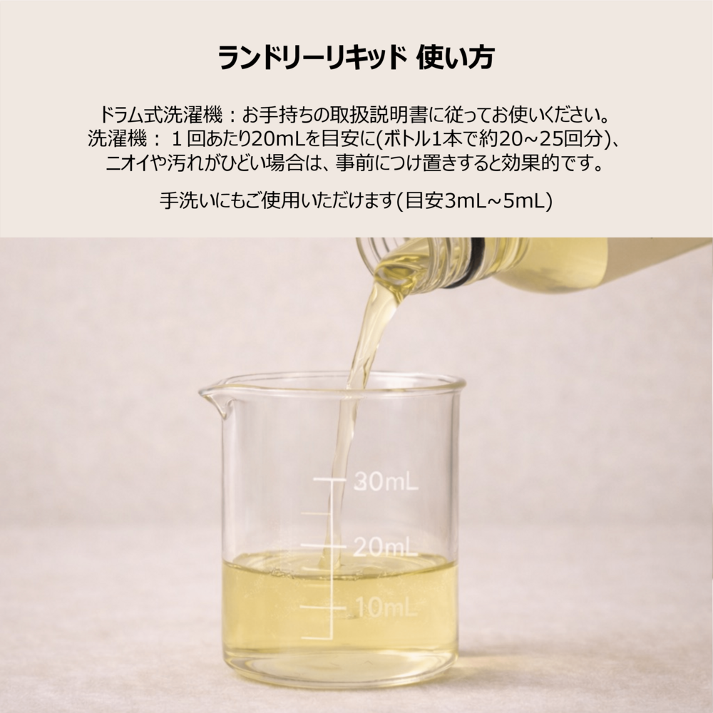 ドラム式洗濯機はお手持ちの取扱説明書に従ってお使いください。洗濯機で使用する場合は1回あたり20mLを目安に(約20~25回分)ニオイや汚れがひどい場合は、事前につけ置きすると効果的です。手洗いにもご使用いただけます。環境への配慮として、洗濯は満水・低温・適正量での使用をおすすめします。