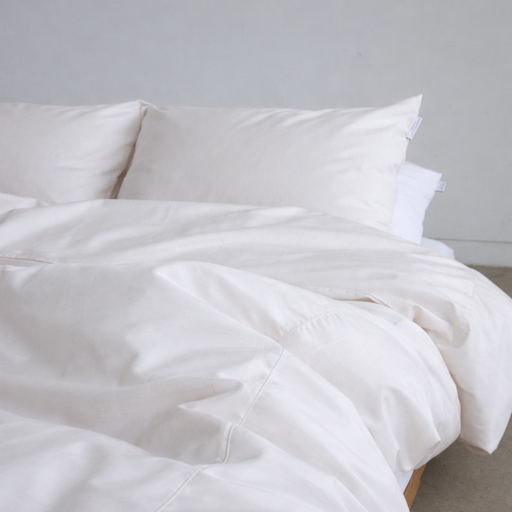 創業100年を超える国内の老舗生地メーカーとともに開発した綿100%サテンの生地は、吸湿性と通気性に優れ、肌ざわりの心地よい素材です。蛍光剤を使用せず、ナチュラルなホワイトに仕上げました。