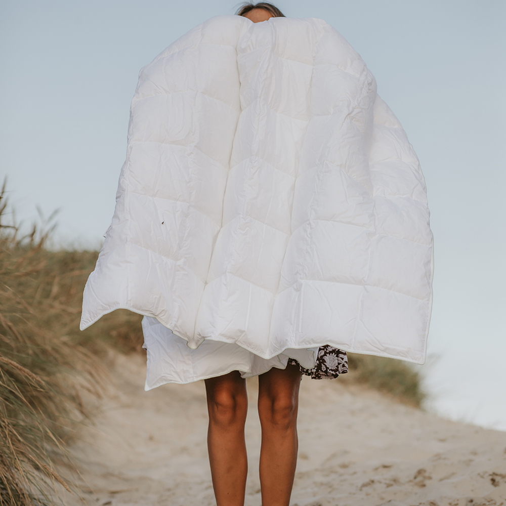 夏は北欧の人たちが待ち望んでいる季節です。太陽が輝き、空が高く、海が青い……夜遅くまで明るいため、できるだけ外で過ごそうとします。夏は気温がかなり上昇することもあるため、寝室の温度が高い時に相応しいサマーラインの掛布団を開発しました。温度調節機能により、心地よい暖かさをキープできます。