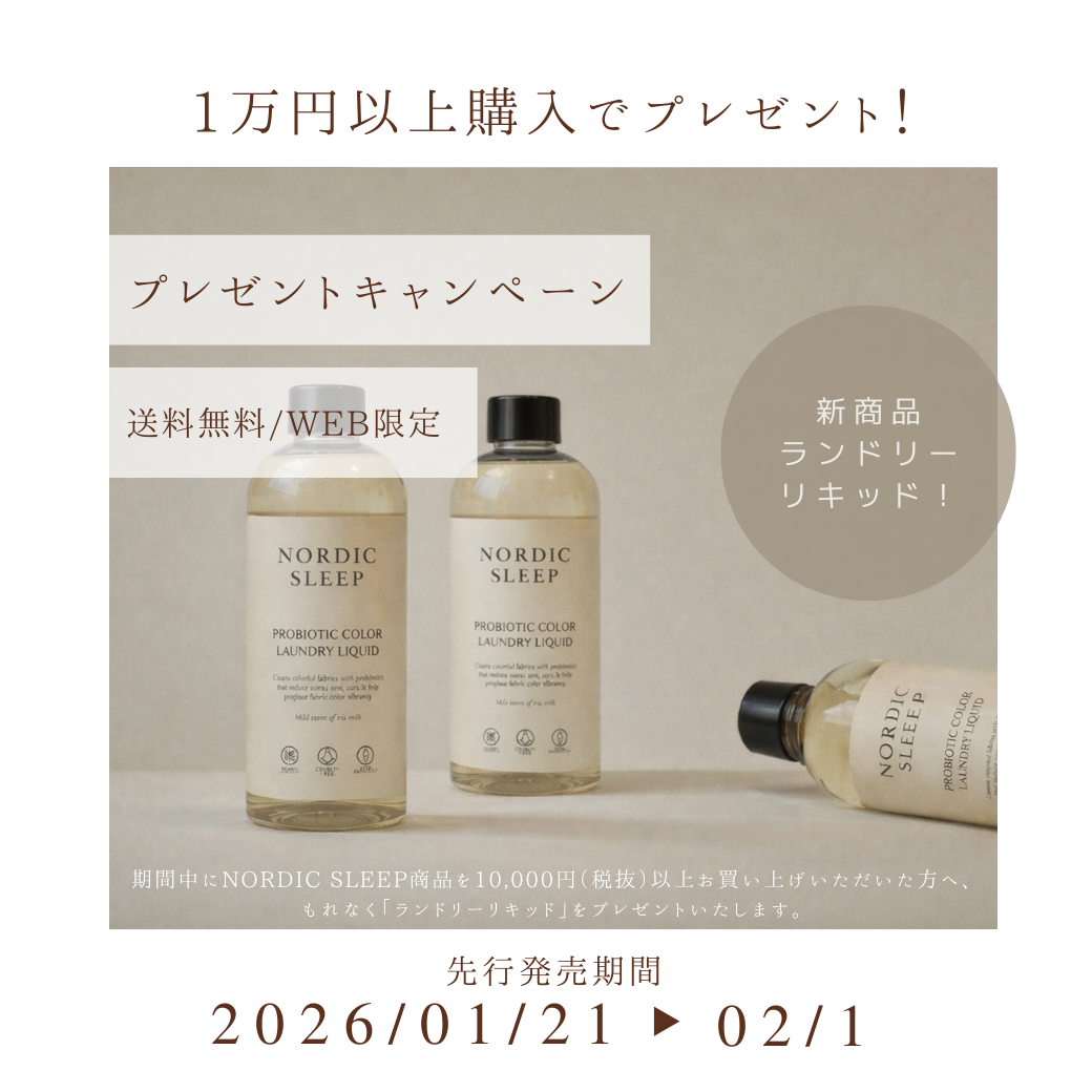 私たちの製品はお手入れが楽で、簡単にフワフワ感をキープし、形を元通りにすることができます。60度のお湯を使用し洗濯機で洗い、低温(60度)設定の乾燥機で乾燥させてください。乾燥後はすぐに製品を取り出しましょう。なお、NORDIC SLEEP製品 には柔軟剤や酵素洗剤を使用しないでください。詰め物の特性が損なわれる恐れがあります。