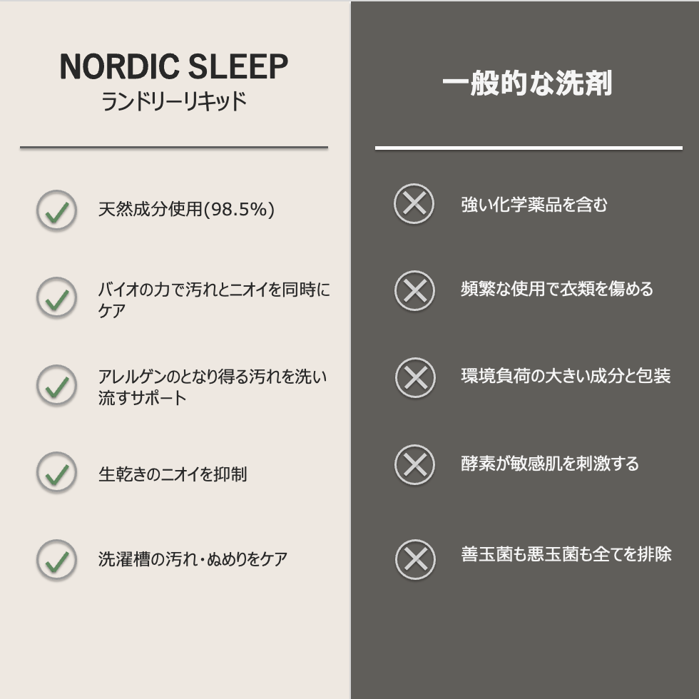 衣類やタオル、シーツやピローケースなど、肌に触れるファブリックはもちろん、枕や掛布団まで幅広く使用可能。毎日の洗たくを通して、睡眠環境そのものを整える、新しいランドリーケアの提案です。