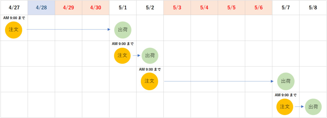 4/27 9:00 AM までのご注文は5/1 出荷、5/2 9:00 AM までのご注文は5/7 出荷となります。